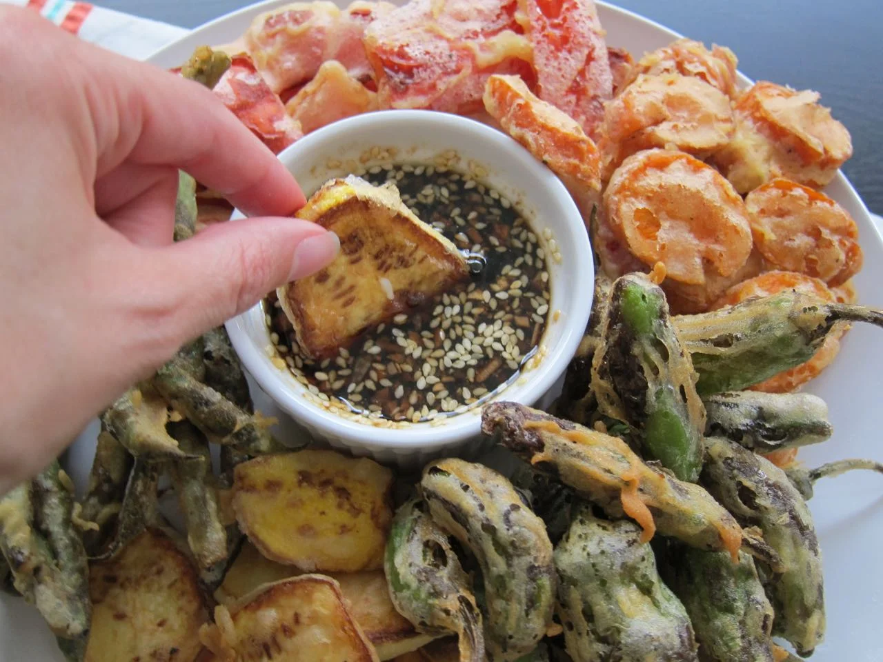 - Dip veggies and fry, 2-3 minutes, until golden and crisp, turning once. Drain on paper towels. Serve with dipping sauce.